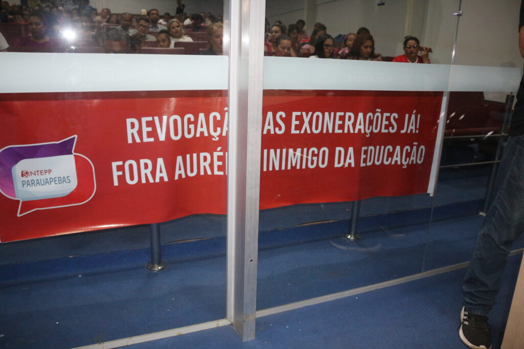 A manifestação na Câmara na manhã de hoje contra a decisão do Prefeito Aurélio Goiano teve como principal agente o SINTEPP, Sindicato da Categoria, que levou faixa e membros filiados a entidade para apresentarem suas insatisfações.