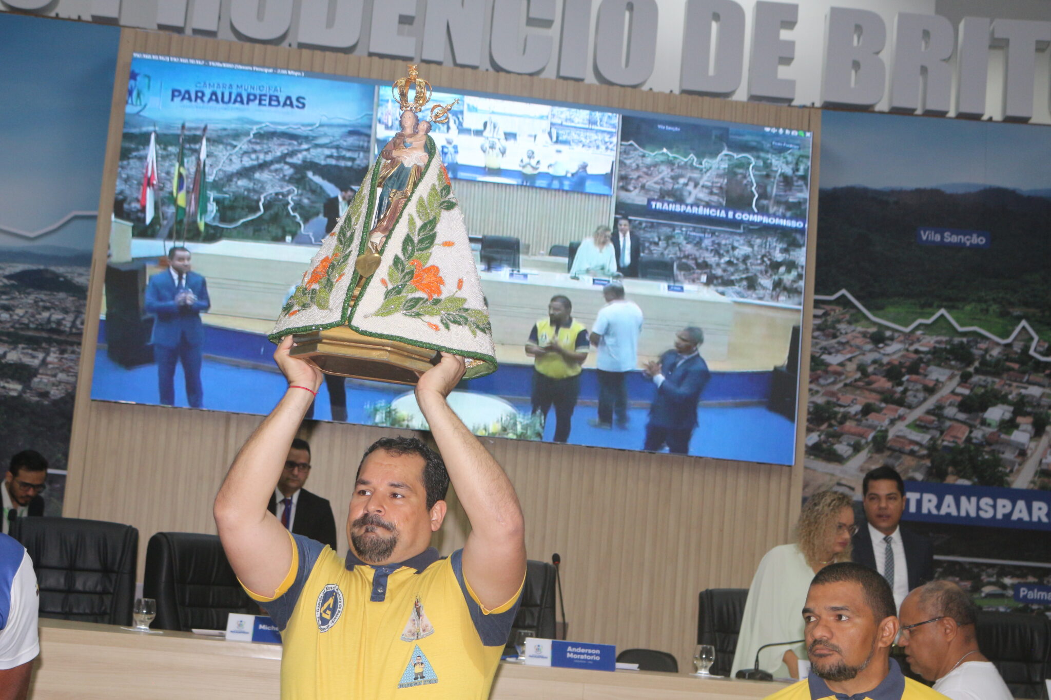 Conduzida pela Guarda Especial, tendo a frente o guarda e vereador Alex Ohana, a “Santinha” como é mais conhecida e carinhosamente tratada pelos paraenses, foi introduzida no recinto e colocada em altar especial instalado no plenário sob intensos aplausos.